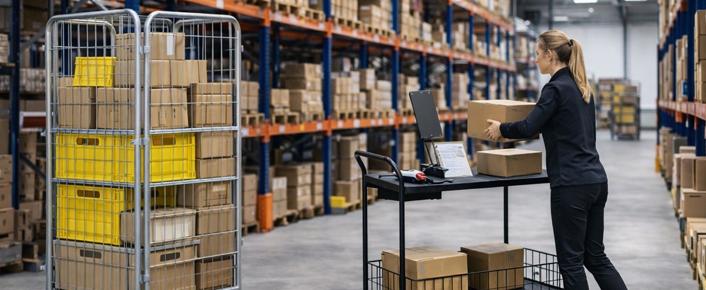 För mindre artiklar kan brickvagnar tillsammans med plastbackar skapa bättre överblick och struktur, särskilt när flera order hanteras samtidigt. När utrustningen anpassas efter arbetsflödet - istället för tvärtom - blir det enklare att arbeta ergonomiskt och hålla ett jämnt tempo under hela arbetsdagen.