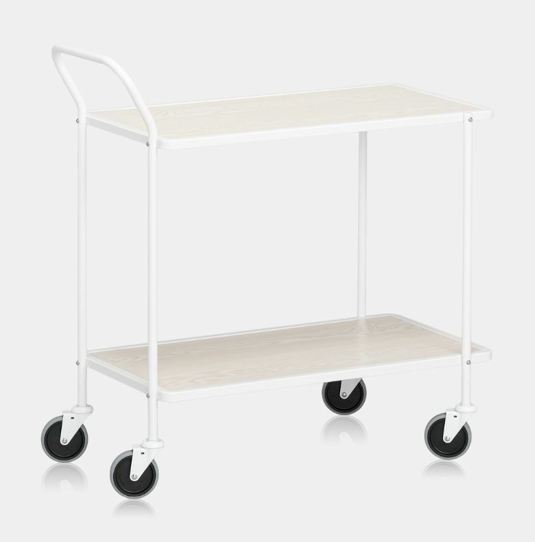 Smidig plockvagn som passar för många olika användningsområden på arbetsplatsen. Flexibel och enkel att manövrera med 100 mm länkhjul. Funkar perfekt som en plockvagn och går att utrusta med tillbehör efter era specifika behov, exempelvis med avdelare, hållare för surfplatta och lådfack. Vagnen är tillverkad i en pulverlackerad rörkonstruktion som levereras knockdown. Hyllplanet är melaminbelagd spånskiva som ligger nedsänkt i en rörram, parallellt med ramen så att det går att skjuta och dra gods över kant. Vagnen klarar en belastning på 100 kg fördelad vikt och finns i två färger. Lasthöjd till översta planet är 745 mm och avstånd mellan planen är 500 mm.