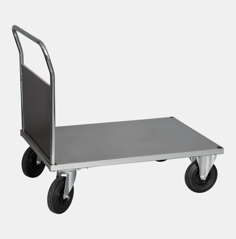 Grå plattformsvagn med körhandtag på ena kortsidan. Finns i flera storlekar.från 2014 SEK exkl. moms